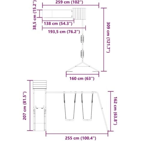 - Dimensions de la balançoire (chacune) : 32,5 x 22 x 112,5 cm (L x l x H)