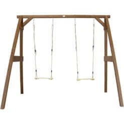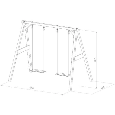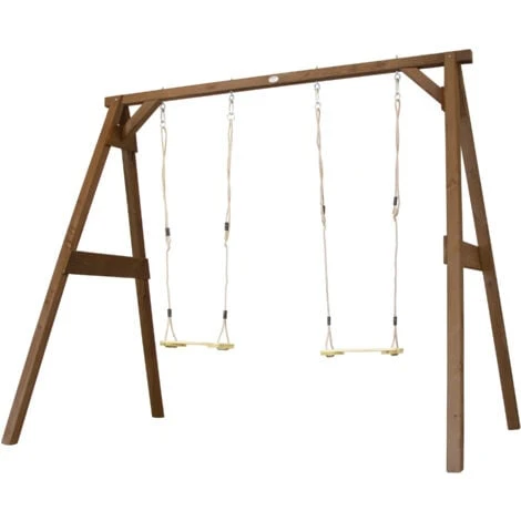 Vos enfants peuvent jouer pendant des heures avec ce portique de grande qualité, fabriquée avec un bois très résistant, naturellement imputrescible, insensible aux champignons et petits animaux. Bois non-traité chimiquement, donc plus édurable et plus sur pour les enfants: en hemlock 100% FSC et garanti 5 ans, portique avec 2 balançoires. Poteaux carrés de 7cm de coté. Dim: 254 x 160 x H207. Inclus 4 pieux d’ancrage au sol. Hauteur sièges réglable. Poids max: 150kg.