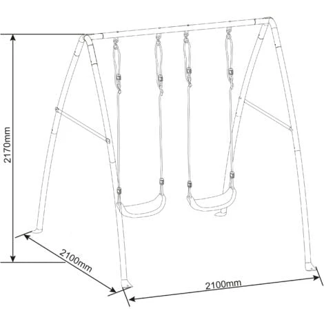 Le portique en métal est en acier revêtu de poudre et est galvanisée à l’intérieur et à l’extérieur. Pour plus de sécurité, le portique est fourni avec quatre ancrages de sol pour la fixation dans le sol. Les sièges en plastique PP sont très faciles à nettoyer. Vous pouvez donc vous balancer même après un peu de pluie. La balançoire grandit avec votre enfant grâce aux cordes réglables qui lui assurent une longue vie. Les