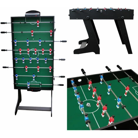 Grâce à ce baby-foot pliable, les petits découvriront le plaisir du football miniature sur table ! Faites-leur plaisir avec ce baby-foot pour enfant, à installer dans la chambre ou dans la salle de jeux pour des heures d’amusement et de loisirs. Il se plie verticalement pour pouvoir se ranger facilement contre un mur, permettant ainsi de gagner de l’espace dans la pièce lorsque les enfants ont fini d’y jouer. Sa structure est fabriquée en MDF, qui allie la robustesse et la légèreté. Vous pouvez le monter et le déplacer facilement et pourrez le garder pendant plusieurs années sans qu’il ne s’abîme. Ce baby-foot pliant pour enfants contient 3 balles de jeu, de quoi s’en donner à cœur joie, à 2 ou à 4, dans des parties passionnées. Entre amis ou en famille, cela plaira à coup sûr à nos benjamins fans du ballon rond !