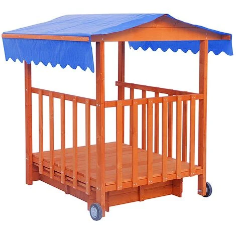 La grande véranda de jeu de 110x110x120 cm avec toit et 2 roulettes est dotée d’une solide rampe tout autour et d’un toit hydrofuge avec protection UV 80 qui protège vos petits de la chaleur et des dangereux rayons UV.