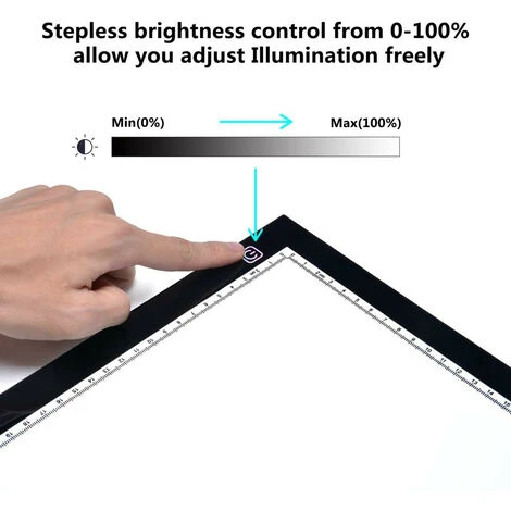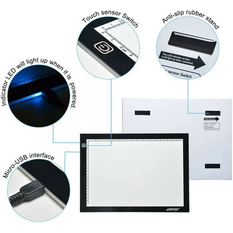 - Design Ultra-mince:La tablette lumineuse a un format A4 et elle est très fine (seulement 5 mm) et lĂ©gère, donc très facile Ă transporter et sans problème de rangement car elle ne prend pas de place. EquipĂ©e avec un 2M de câble micro USB, assez longue pour vous utiliser, vous pouvez directement connecter une banque d’alimentation, d’un ordinateur ou d’un port USB