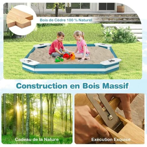 - 【Construction en bois massif :】Fabriqué en bois de cèdre durable et 100% naturel, le bac à sable robuste pour enfants vous accompagnera pendant longtemps. La surface lisse et sans bavure protège la peau délicate de vos enfants.