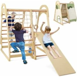 - 【Aire de jeu 6 en 1 :】Avec cet ensemble de jeu d’escalade multifonctionnel, vos enfants auront des heures de plaisir avec barres de singe, filet, échelle, anneaux de gymnastique et un toboggan réversible pour glisse et escalade.