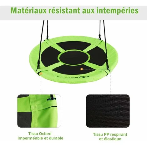 - Solide etsécuritaire – Le nid de labalançoire est supporté par le tube d’acier de bonne qualité, donc, il estsolide et durable de charger un poids maximal de 150 kg. Et grâce à la façonexquise, la balançoire sans arête est sécuritaire pour les joueurs.