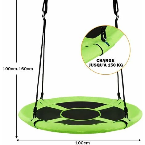 - Hauteurajustable – Les cordssont réglables de 100 cm à 160 cm, cela peut non seulement s’adapter auxpersonnes de différentes tailles, mais aussi apporter de différentesexpériences de la balançoire.