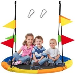 | Balançoire de Surf | Balançoire Nid d’Oiseau Rond | avec sangles suspendues | avec Tente | Surface Réversible | avec 8 Drapeaux |