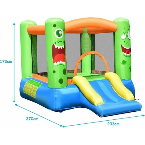 - 【Amusement en continu】notre aire de jeux gonflable comporte une zone de saut suffisamment spacieuse pour permettre à 2 enfants de rebondir en toute liberté. Un toboggan sécurisé et une grande entrée permettent un accès facile. En outre, l’aire est équipée d’un cercle pour panier de basket-ball pour que les enfants puissent s’entraîner au lancer.