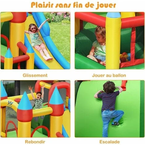 - Notre maison gonflable à rebond comprend un trampoline intégré, 2 toboggans, un bassin de ballon de mer, un mur d’escalade et un rebord de basketball, ce qui donne à vos enfants un plaisir différent à jouer.