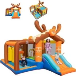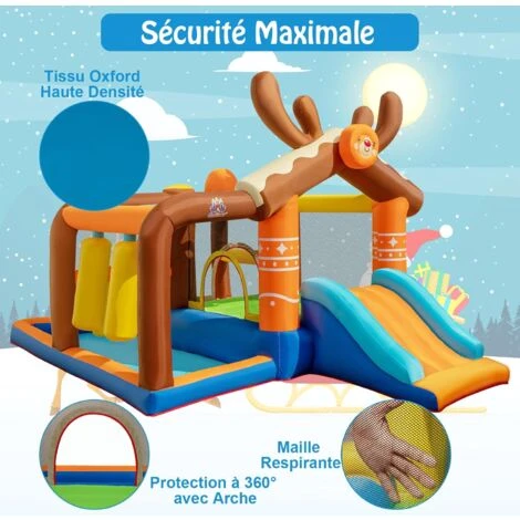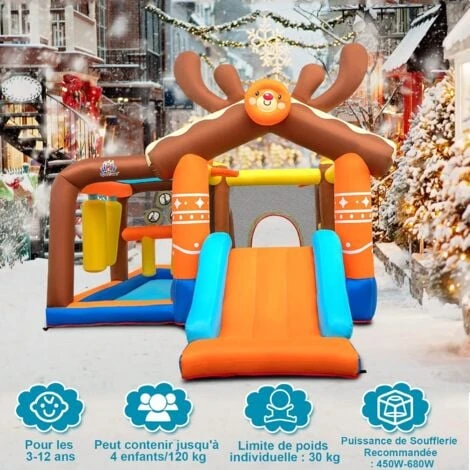 - 【Meilleur choix de cadeau】Conçu dans une apparence sur le thème du renne, le château gonflable est joli et attrayant pour les enfants. Il est fait de tissu oxford haute densité, imperméable et résistant à la déchirure ou à l’usure. De plus, les coutures serrées assurent une grande étanchéité, permettant à la zone gonflable de supporter 4 enfants (120 kg au total).