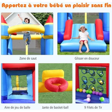 - 【Jeux et sports】le château gonflable offre à 3-4 enfants un espace pour jouer ensemble. On y trouve également une piscine à balles, un toboggan, un ballon de basket, un ballon de soccer, une piscine à balles, etc. Les différentes aires de jeux favorisent la motricité.