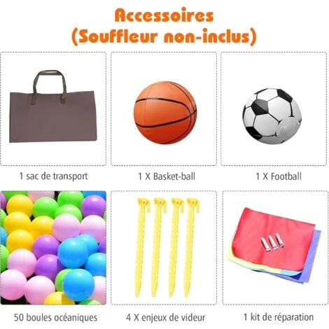- 【Super cadeau pour enfant】les accessoires comprennent un kit de réparation, un ballon de basket, un ballon de football et 50 petites balles, ce qui le rend parfait pour les enfants. Ils sont sûrs d’aimer les couleurs vives.