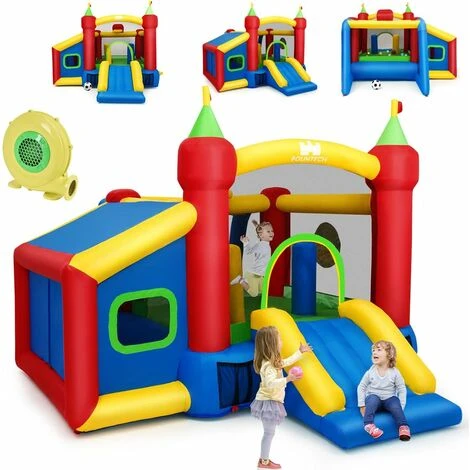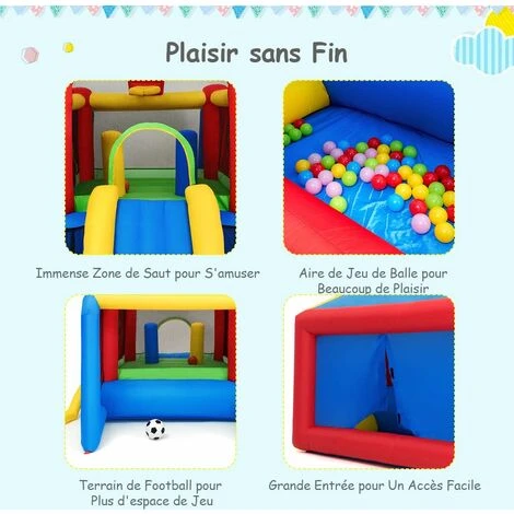 - 【Les accessoires plus parfaits】 Cet châteaux gonflable multifonctionnel comprend un toboggan, six clous, un sac de rangement, quatre patchs, cent ballons marins, un ballon de basket en PVC, trois fléchettes magnifiques, un ballon football, et un pompe de football. Et puis, Il a également un panier pour enfants qui permet aux enfants de lancer les boules et de les aider à grandir, procurant une joie sans fin aux enfants.