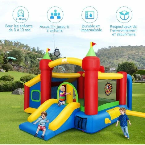 - 【Les jeux multiples】Château gonflabe multifonctionnel existe une variété de façon de jouer, tells que jeux de trampoline, jeux de toboggan, jeux de projection de fléchettes, jeux de basket tiré, jeux de football et jeux d’aventure mystère. En outre, il est léger, facile à plier, vous pouvez le mettre dans le sac, est facile à transporter, facile à ranger et ne vous causera pas trop de problèmes.