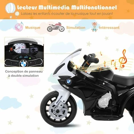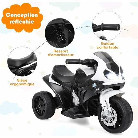 Votre enfant aime-t-il beaucoup les motos? Notre moto électrique à trois roues est parfaite pour votre enfant! Notre moto pour enfants est livrée avec trois roues pour une structure stable. Les roues antidérapantes en matériau PE peuvent se déplacer sur une variété de terre. Le siège et les repos- pieds donnent à l’enfant une position assise confortable. Avec de la musique et des lumières, les enfants pouvent déplacer librement et permettre à enfant de vivre une expérience de conduite intéressant. La conception rechargeable est très pratique, peut jouer pendant 8-12 heures après une charge complète, très durable. N’hésitez pas ! Apportez cette moto sûre et amusante à vos enfants!