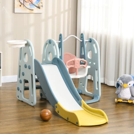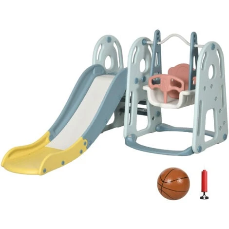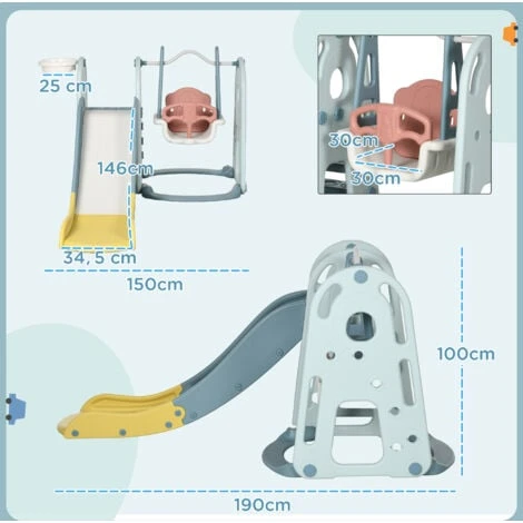 – Design 3 en 1 avec un toboggan, une balançoire et un panier de basket-ball