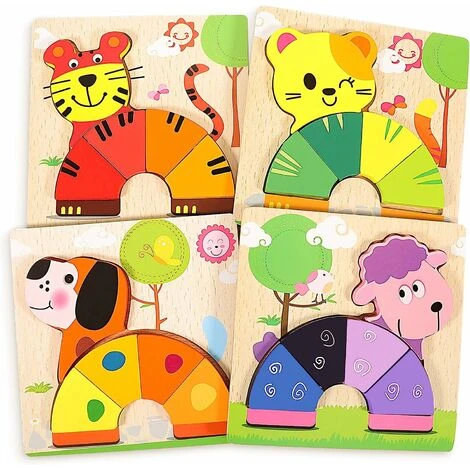 Cet ensemble de puzzles d’animaux en bois contient quatre formes d’animaux différentes de puzzles. Des couleurs vives et un joli motif de puzzle en bois attireront vos enfants, favoriseront leur reconnaissance et leur perception des différentes couleurs