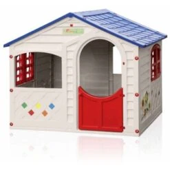 Solide, avec une forme traditionnelle et fiable, la maison pour enfants Mia produite par l’italien Grand Soleil est facile à monter et à démonter et, surtout, minutieusement détaillée pour répondre aux réglementations européennes en matière de sécurité des jouets. Les plastiques utilisés pour la construction de la maison, de première qualité Made in Italy, épais et très rigides, agréables au toucher, ne sont absolument pas nocifs, avec tous les coins de la maison arrondis et sans parties tranchantes pouvant causer des dommages même aux plus jeunes enfants. La maison convient pour rester à l’extérieur toute l’année avec d’autres jeux de jardin, mais aussi à l’intérieur de la chambre ou dans un coin du salon s’il y a suffisamment d’espace. Grande, haute, spacieuse, avec de petites fenêtres donnant sur l’extérieur et un toit en pente bleu, la maison peut accueillir jusqu’à 5 enfants et est facilement accessible grâce à la porte d’entrée rouge, et une fois à l’intérieur, les enfants ont beaucoup d’espace pour s’amuser librement pendant des heures et des heures en toute sérénité et sécurité. Les peintures utilisées sont toutes non toxiques et résistantes à la pluie, la neige, aux rayons UV, elles ne s’estompent donc pas au soleil et restent brillantes dans le temps.