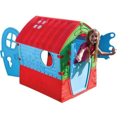 Pour des moments d’amusements dès 2 ans, cette aire de jeu pour enfant type maisonnette avec 1 porte avant, 2 fenêtres latérales et une fenêtre avec volets à l’arrière saura ravir vos enfants !Â