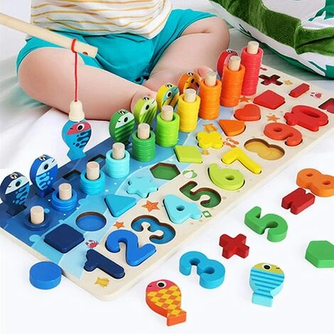Montessori Math Jeu De Plug-in/jeu De Pêche Pour Enfants Jouets En Bois Tri Plug-in Puzzle Mathématiques Comptage Apprentissage Préscolaire Bébé Blocs De Bois Jouets Pour Enfants Pour Garçons Filles D
