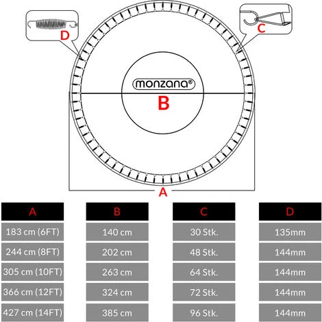 - Compatible avec les trampolines de la marque Monzana, ainsi que d’autres modèles