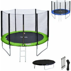 – Trampoline : Ø 305 × H au sol 76 × H avec filet 256cm