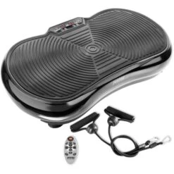 Equipé d’un moteur de 400W à faible consommation, 99 vitesses et 9 programmes différents, il dispose d’une base stable et antidérapante, de 2 écrans LCD et d’une télécommande qui vous permet de contrôler la plateforme à distance. Il comprend également 2 cordes élastiques qui vous permettent d’exercer vos bras et vos épaules.