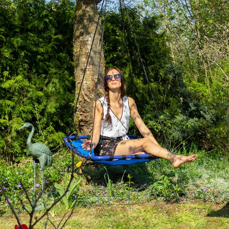 Cette balançoire nid d’oiseau peut supporter une charge maximale de 113 kg environ. Veuillez prendre note des conditions d’utilisations et de sécurité dans la notice.