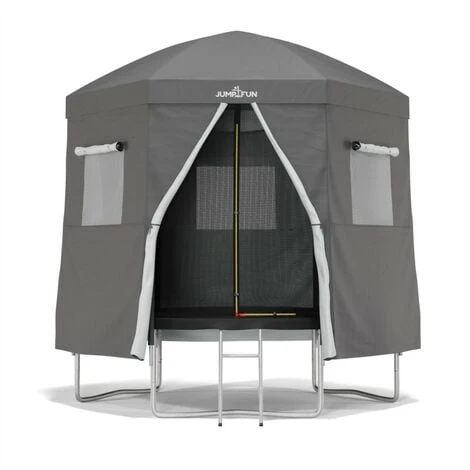Cette tente de trampoline est vendue sans le trampoline. Elle est compatible avec nos modèles de trampolines 10 Ft (modèle avec 6perches/sections), nous ne garantissons pas la compatibilité avec les modèles d’autres marques.