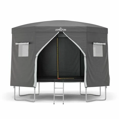 Cette tente de trampoline est vendue sans le trampoline. Elle est compatible avec nos modèles de trampolines 12 Ft (modèle avec 8perches/sections), nous ne garantissons pas la compatibilité avec les modèles d’autres marques.