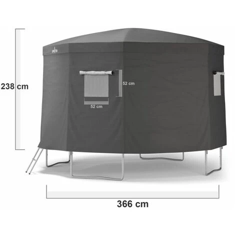 Cette tente pour trampoline offre une solution idéale pour les journées chaudes et ensoleillées. Ses parois en polyester sont traitées anti-UV pour que vos enfants puissent profiter de la tente tout en étant protégés du soleil. La paroi s’enlève et se remet facilement à votre convenance, vous permettant d’utiliser seulement le toit à la manière d’un parasol.