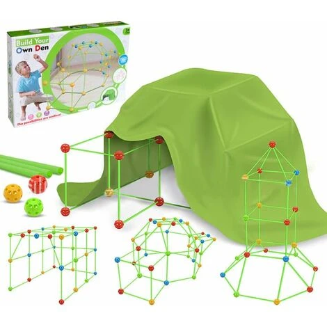TENTE DE BRICOLAGE POUR ENFANTS: Notre kit de construction de fort ultime pour enfants est conçu pour les enfants de plus de 5 ans, ils peuvent construire une grotte, jouer avec des tentes, des maisons, des igloos, des châteaux de princesse, des tunnels, une tente jouet, un bateau pirate, il suffit dajouter des feuilles pour créer un cachette
