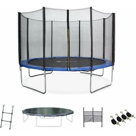 Attention. Il est impératif de lester ou de fixer votre trampoline au sol de façon permanente afin d’éviter au maximum un risque d’instabilité et de prise au vent.
