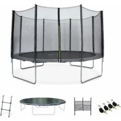 Kangui – Trampoline Rond Ă360cm Avec Filet, Ă©chelle, BĂąche Et Kit D’ancrage – RALLI 360