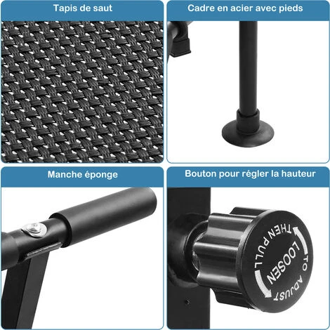le système de cordon élastique sans bruit au lieu du rebond silencieux qui créé par les ressort , il a un système pratiquement silencieux qui est un rebond doux et lisse par rapport aux ressorts en acier, de sorte que vous pouvez vous entraîner sans grincements gênants. Ce qui en fait un outil parfait pour l’entraînement en intérieur et en extérieur.