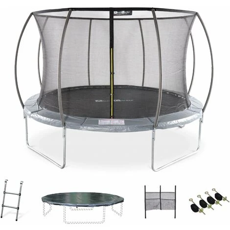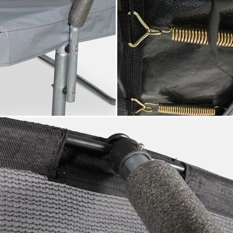 Attention. Il est impératif de lester ou de fixer votre trampoline au sol de façon permanente afin d’éviter au maximum un risque d’instabilité et de prise au vent.