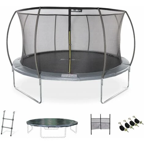 Attention. Il est impératif de lester ou de fixer votre trampoline au sol de façon permanente afin d’éviter au maximum un risque d’instabilité et de prise au vent.